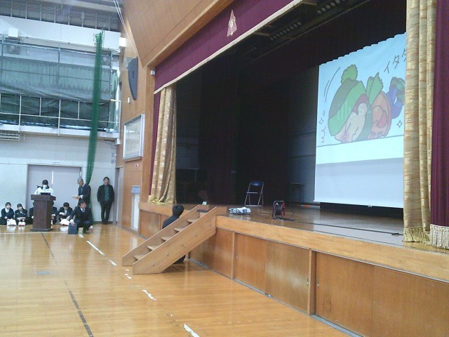 生徒指導担当からは「冬休みの過ごし方」「電子機器やSNSの利用」について、安全委員のみなさんからはスライドを用いて「交通安全」「ブラックアイスバーン」「12月のあわただしさ」について、話がありました。