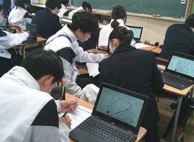 3年生の学級活動(受験校への行き方調べ)の様子です。
