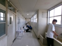 給食後下校・武道場展示準備