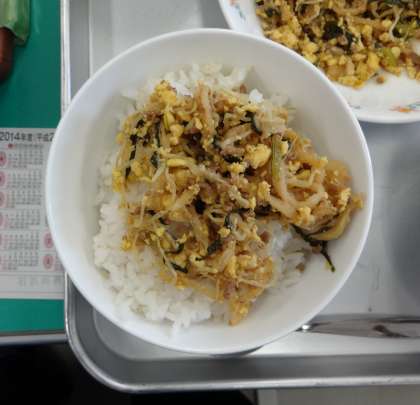 今日の給食は韓国風です!〈6月7日(金曜)〉 公開日 2013/06/07 更新日 2013/06/07 学校だより 今日のメニューです。 ・麦ごはん ・牛乳 ・ピリ辛スープ ・ビビンバ ・型抜きチーズ