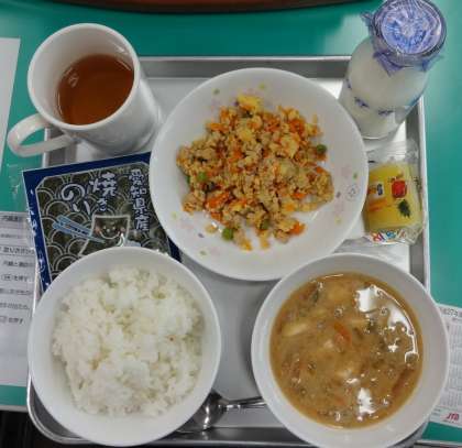今日の給食です!〈7月11日(木曜)〉 公開日 2013/07/11 更新日 2013/07/11 学校だより 今日のメニューです。 ・ごはん ・牛乳 ・呉汁 ・親子そぼろ ・冷凍パイナップル ・手巻きのり