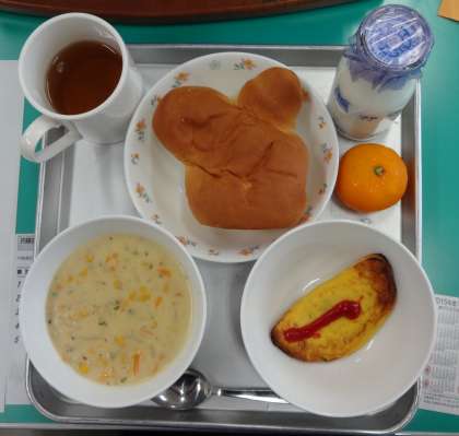 今日の給食です!〈7月16日(火曜)〉 公開日 2013/07/16 更新日 2013/07/16 学校だより 今日のメニューです。 ・クロスロールパン ・牛乳 ・野菜のポタージュ ・かぼちゃオムレツ ・冷凍みかん ・卓上ケチャップ