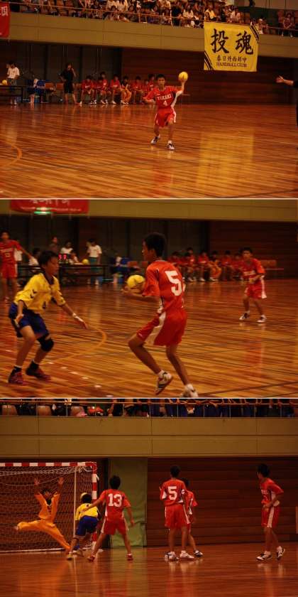 夏の大会速報〈ハンドボール〉 公開日 2013/07/20 更新日 2013/07/20 部活動 予選リーグ二回戦、柏原中に9ー25で惜敗。 強豪の2チームを相手に負けてしまいましたが、ずいぶん力をつけたと思います。 2試合、全力でがんばりました。お疲れ様でした!