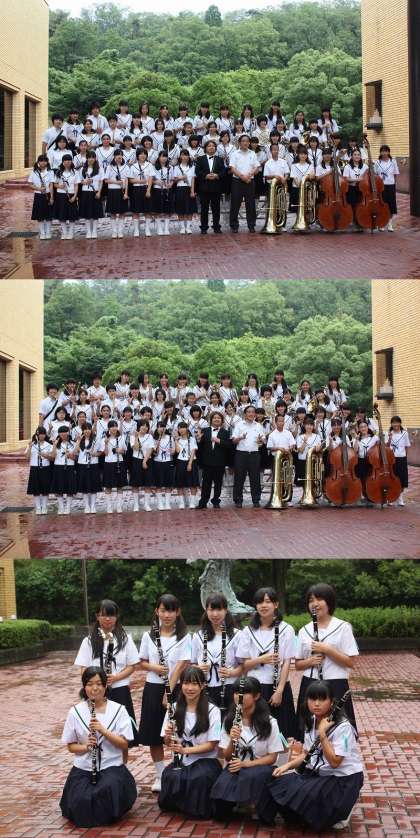 演奏後の記念撮影では、緊張から解放され、充実感あふれる笑顔で応じていました。