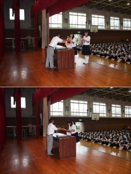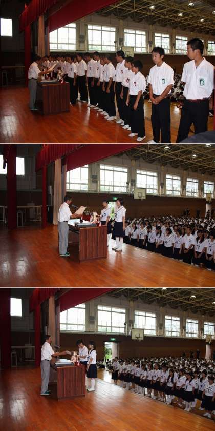 7月29日(月曜)、出校日の集会の中で、夏の大会や発表会・コンクールの表彰伝達を行いました。