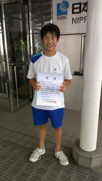 8月8日、水泳の東海大会が日本ガイシアリーナで行われ、一年生の笠島大雅くんが出場しました。