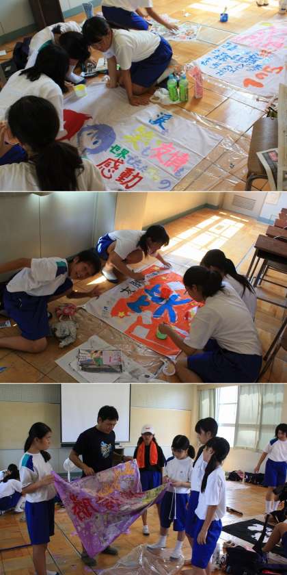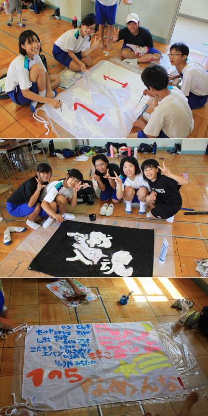8月21日(水曜)、1・3年生のクラス代表が体育大会で使う学級旗を作りました。