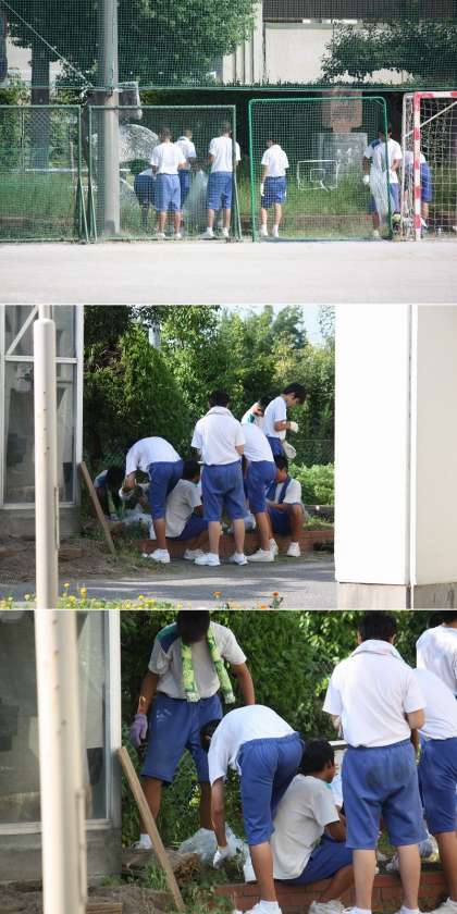 除草作業をしました!〈2年生〉 公開日 2013/08/22 更新日 2013/08/22 学校だより 8月22日(木曜)、出校日の清掃時に2年生が除草作業を行いました。 前日までに先生方が苅った草を、時間を大幅に延長してきれいにしてくれました。 ご苦労様でした!