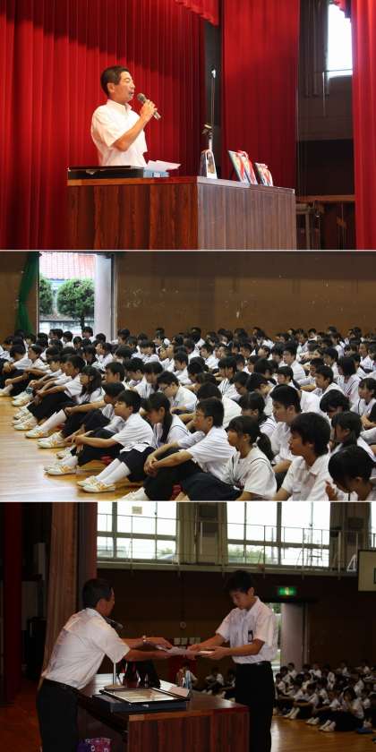 校長先生からは「2学期は体育大会や文化祭など活躍できる場がたくさんある。全力でがんばろう!」という話をいただきました。