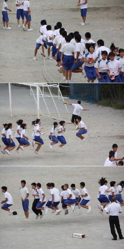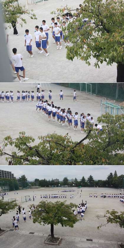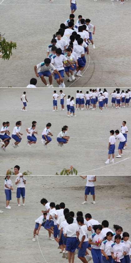 15分放課や昼放課になると、大縄とびの練習で運動場がいっぱいになります。