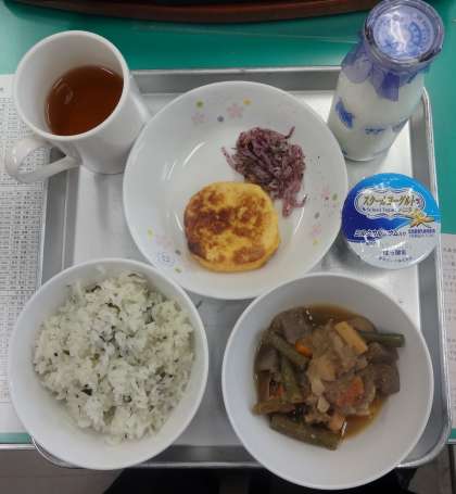 今日の給食です!〈9月13日(金曜)〉 公開日 2013/09/13 更新日 2013/09/13 学校だより 今日のメニューです。 ・わかめごはん ・牛乳 ・三州煮 ・五目卵焼き ・もやしのゆかり和え ・フローズンヨーグルト