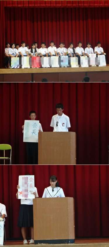 9月24日(火曜)6限、後期生徒会役員選挙の立ち会い演説会を行いました。