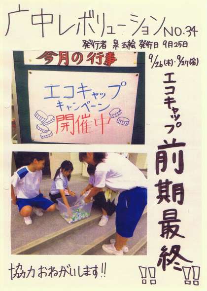 エコキャップキャンペーンにご協力ください! 公開日 2013/09/25 更新日 2013/09/25 生徒会 エコキャップキャンペーン開催中です。 明日26日(木)、明後日27日(金)が前期最終となりました。 ご協力よろしくお願いしま〜す! 生徒会からのお願いでした。