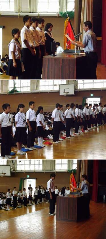 9月30日(月曜)、集会で後期生徒会役員と学級委員の任命式を行いました。