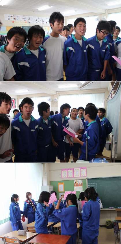 合唱に燃えてます! 公開日 2013/10/16 更新日 2013/10/16 学校行事 文化祭の中で行われる合唱コンクールに向け、合唱に燃えています! 10月16日(水曜)6限学活、3年生は他クラスに負けないよう、競って練習しています。いい雰囲気です。