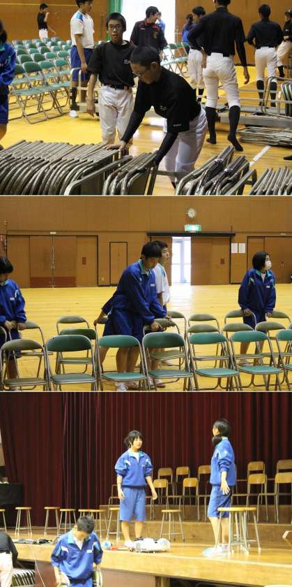 文化祭の前日準備をしました! 公開日 2013/10/30 更新日 2013/10/30 学校行事 10月30日(水曜)、午後から文化祭の準備とリハーサルを行いました。 体育館ではいす並べなど、ステージ発表の会場作りを、武道場では各教科で作った作品を飾り付け、作品展の会場作りを行いました。 4時頃にはすっかり準備が整いました。お疲れ様でした。 みんな、明日はがんばろうね!