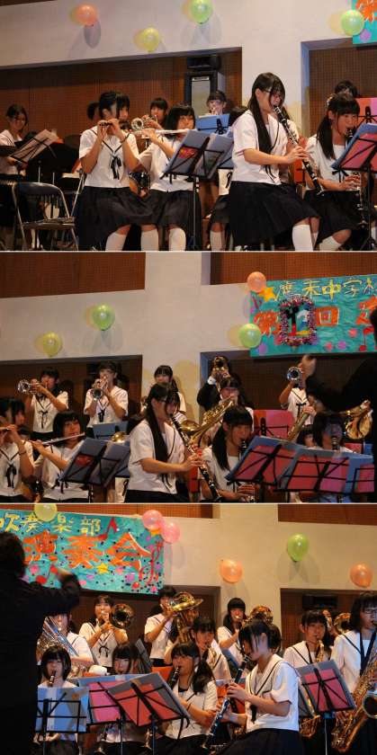 定期演奏会を行いました! 公開日 2013/11/03 更新日 2013/11/03 部活動 11月3日(日曜)、吹奏楽部が鷹来公民館で第12回定期演奏会を行いました。 地域の方や保護者、鷹中生、先生方など300人以上が観客として押し寄せる中、見事な演奏を聴かせてくれました! 3年生は今日が最後の演奏でした。お疲れ様でした! また、顧問の稲垣先生、木全先生、戸田先生、部活講師の山先生、ここまでご指導いただき、ありがとうございました!