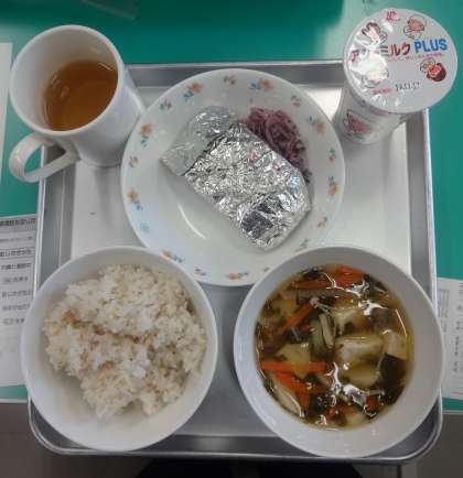 今日の給食です!〈11月5日(火曜)〉 公開日 2013/11/05 更新日 2013/11/05 学校だより 今日のメニューです。 ・麦ごはん ・はっこう乳 ・吉野汁 ・さばの銀紙焼き ・もやしのゆかり和え