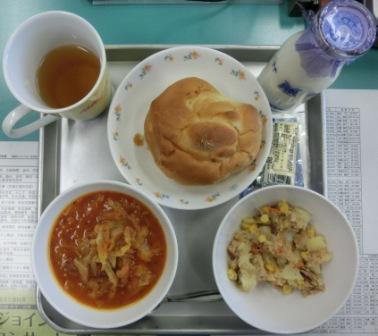 今日の給食です!<11月8日(金)> 公開日 2013/11/08 更新日 2013/11/08 学校だより 今日の給食です。 ・ミートボールのトマトシチュー(応募献立です) ・コロコロポテトサラダ ・小袋マヨネーズ ・干し小魚