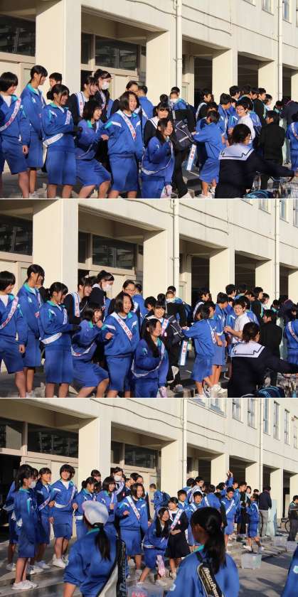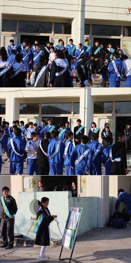 あいさつ運動3日目です! 公開日 2013/11/28 更新日 2013/11/28 生徒会 11月27日(水曜)、今日の当番は1年3組と2年3組。 元気な女子たちが、昇降口前で明るく迎えてくれました!