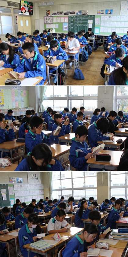 読書週間がはじまりました! 公開日 2013/12/03 更新日 2013/12/03 学校行事 12月3日(火曜)から9日(月曜)まで、冬の読書週間です。 1年生の教室をまわってきましたが、どのクラスも落ち着いて読書に取り組んでいました。