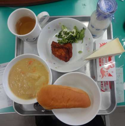 ケーキはセレクトです!〈12月19日(木曜)〉 公開日 2013/12/19 更新日 2013/12/19 学校だより ・小型ロールパン ・牛乳 ・じゃがいもスープ ・フライドチキン ・ボイルブロッコリー ・卓上マヨネーズ ・チーズケーキORお米のケーキ