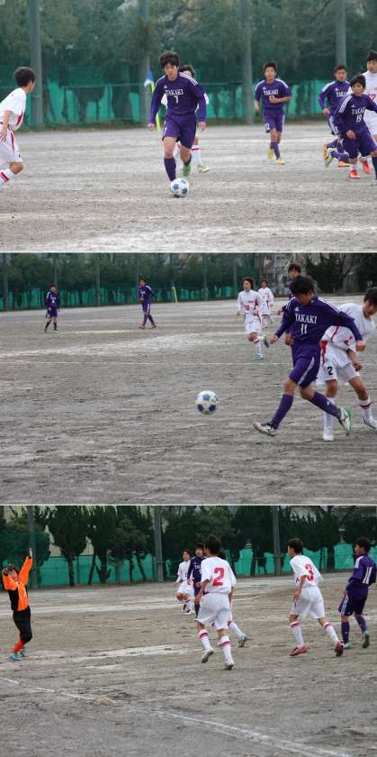 U-13準々決勝に快勝! 公開日 2013/12/21 更新日 2013/12/21 部活動 12月21日(土曜)、サッカーのU−13春日井大会の決勝トーナメントが柏原中学校で行われました。 準々決勝の相手は石尾台中学校。鷹来中は序盤から得点を重ね、6−0で快勝!準決勝へコマを進めました。おめでとう!