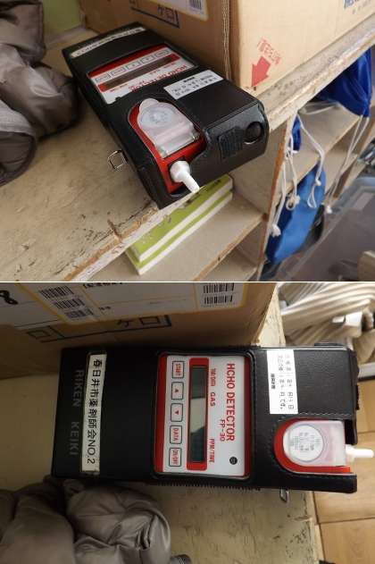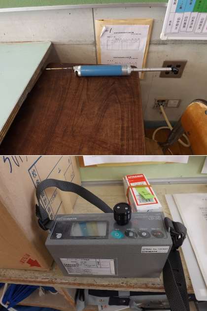 鷹来中学校の学校薬剤師さんが、二酸化炭素や一酸化炭素、二酸化窒素などの測定をしてくださいました。