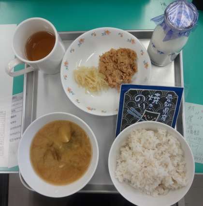・麦ごはん ・牛乳 ●飛鳥汁 ・まぐろの甘辛煮