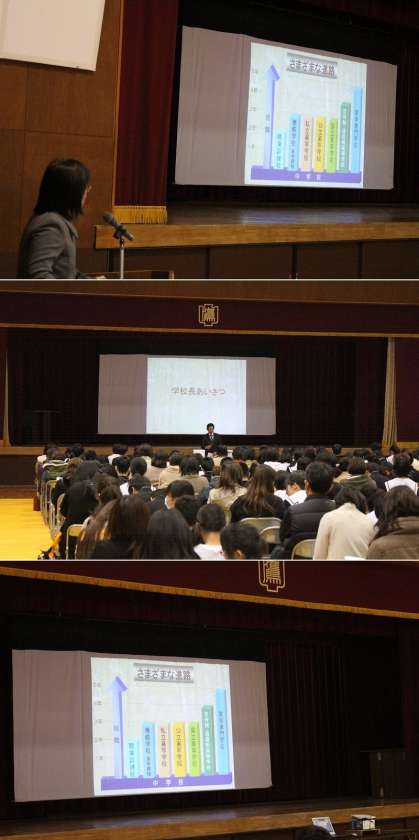 みんな、進路指導主事の尾島先生の話を真剣に聞いていました。