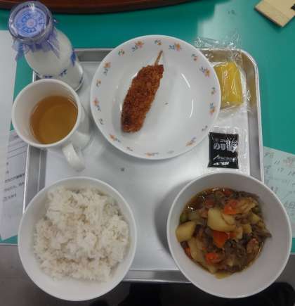今日の給食です!〈3月18日(火)〉 公開日 2014/03/18 更新日 2014/03/18 学校だより 今日のメニューです。 ・麦ごはん ・牛乳 ・肉じゃが ・まぐろ串フライ ・パイナップル ・のり佃煮