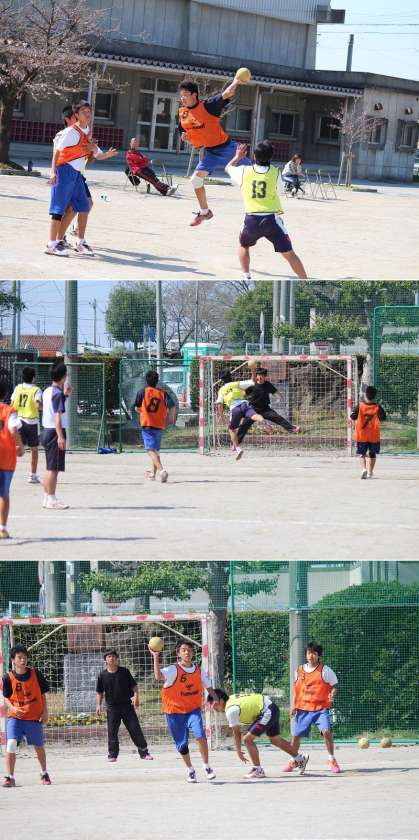 3月28日(金曜)ハンド部は岩成台中と高蔵寺中をお招きし練習試合を行いました。