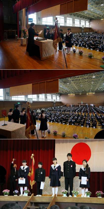 始業式に先立って、前期生徒会役員5名の任命式を行いました。 前期の期間、よろしくお願いします。