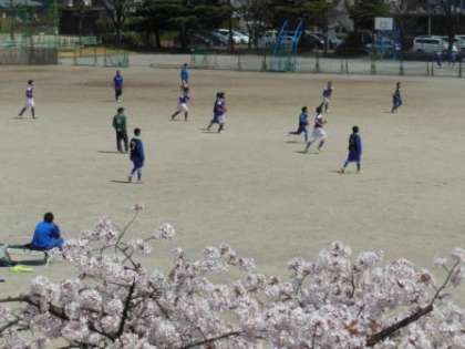 昨日は、入学式・始業式でした。夕方から気温が下がり、今日は花冷えの休日となりました。学校の桜も満開から散り始めというところです。グランドでは、サッカー部がOB戦をやっていました。