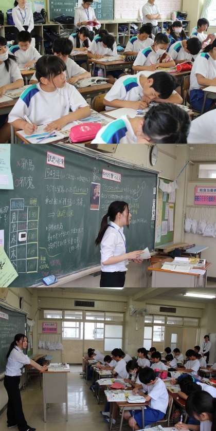 教育実習生研究授業〈2年4組 社会〉 公開日 2014/06/18 更新日 2014/06/18 学校だより 2年4組で、教育実習生の大野先生が、社会の研究授業を行いました。生徒の興味・関心を高めようと工夫していました。