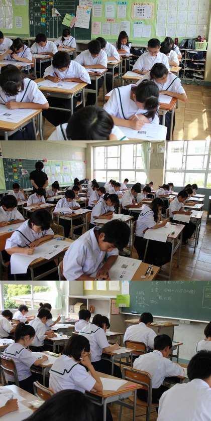 1年 今日から第2回テストが始まりました。梅雨の合間で気温も上がってきましたが、体調には十分注意して、日頃の勉強の成果を発揮してください。