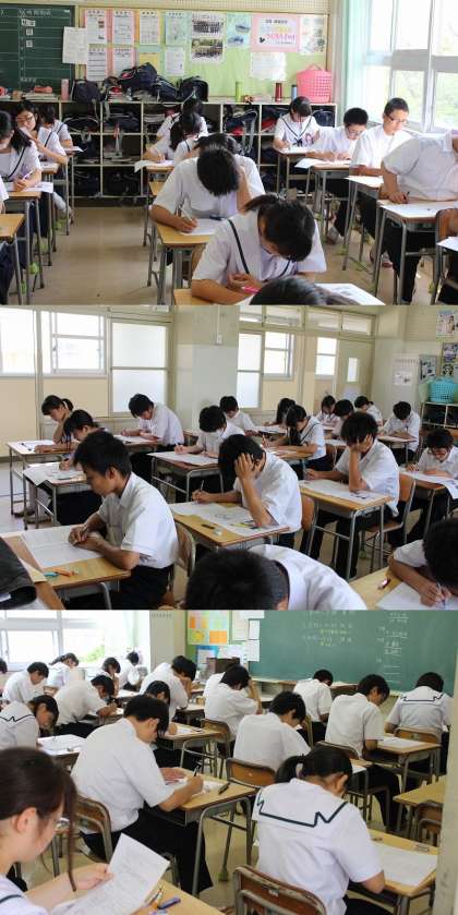 1年  今日は、第2回テスト2日目です。暑い日が続きますが、明日は最終日です。もうひとがんばりです。