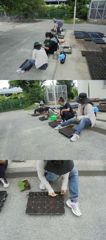 PTAボランティア〈6月27日(金)〉 公開日 2014/06/28 更新日 2014/06/28 PTA 5名の保護者の方に、花のポットづくり(サルビア・マリーゴールド)のお手伝いをしていただきました。蒸し暑い中、本当にごくろうさまでした。