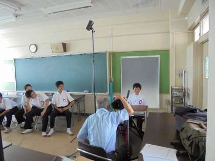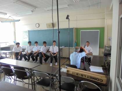 卒業アルバムの個人写真の撮影風景です。やっぱり笑顔が最高です。写真屋の浜ちゃんは、みんなの笑顔をつくることがとても上手でした。アルバムが楽しみです。