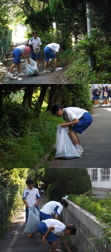生徒会主催の「クリーンボランティア(通称:クリボ)」が7月1日(火)のST後に行われました。各クラスからボランティアを募集し、ST後30分の清掃活動を行いました。天気が心配ですが3日(木)もあります。