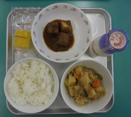 今日の給食です。〈7月9日(水)〉 公開日 2014/07/09 更新日 2014/07/09 学校だより 今日のメニューです。 ・ごはん ・牛乳 ・ツナじゃが ・生揚げのごまみそかけ ・冷凍パイナップル