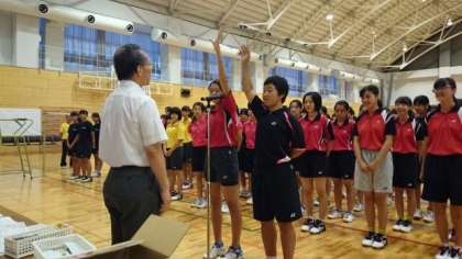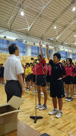 いよいよ市大会がはじまりました。 バドミントンの開会式の様子です。