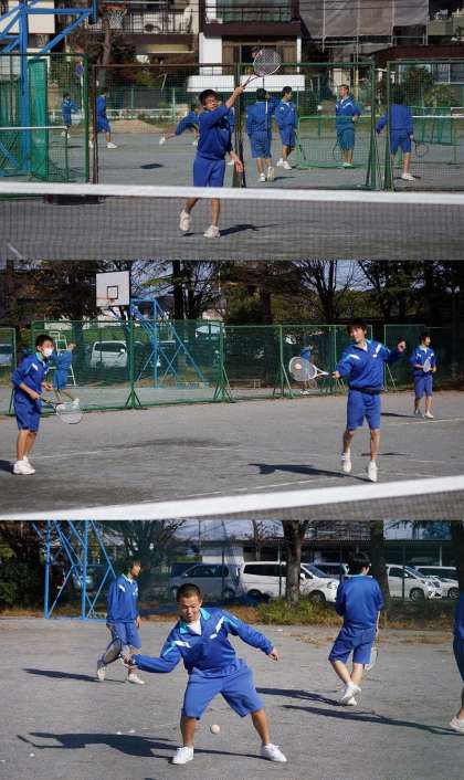 3年男子体育の授業風景 公開日 2014/12/04 更新日 2014/12/04 学校だより 3年生男子体育(ソフトテニス)の授業風景です。本校には、男子ソフトテニス部はありませんが、みんななかなかなものです。
