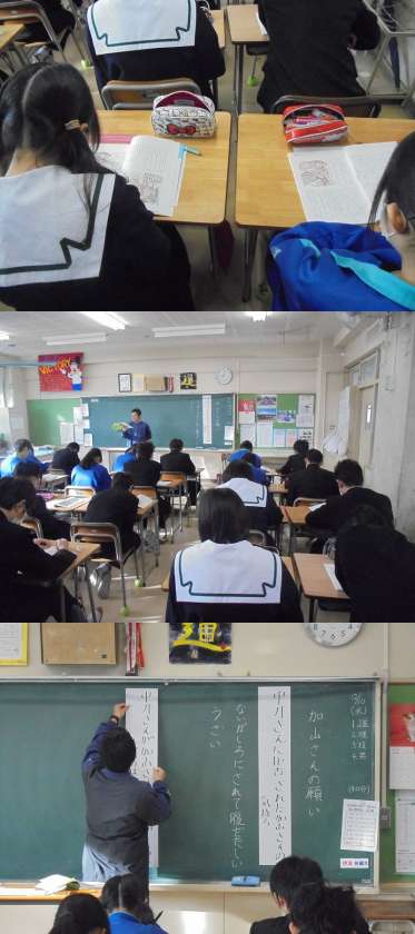 研究授業〈3年2組 道徳〉 公開日 2014/12/10 更新日 2014/12/10 学校だより 佐藤先生による道徳の授業が3年2組で行われました。主題は、ボランティアの精神」で、働くことの意義を理解するとともに、社会への奉仕の気持ちを深め、公共福祉と社会の発展のために、進んで活動しようとする気持ちを高めることがねらいでした。