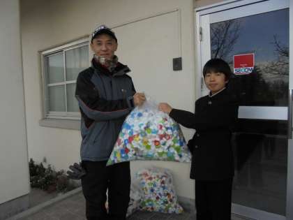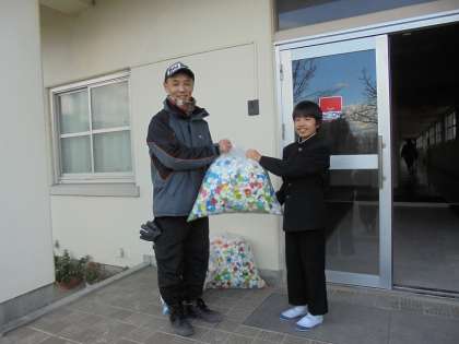 本日、加藤新聞店様よりペットボトルのキャップをいただきました。生徒会のペットボトル回収キャンペーンにご賛同いただき、何度もいただいています。ありがとうございます。