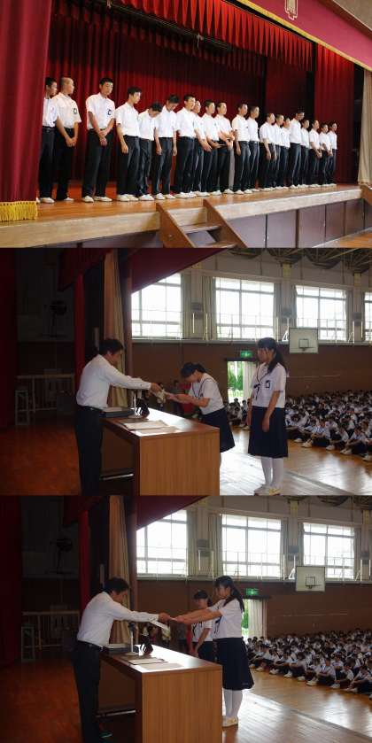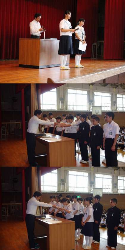 朝会〈5月18日(月)〉 公開日 2015/05/18 更新日 2015/05/18 学校だより 本日の朝会で、表彰伝達がありました。野球部、ソフトテニス部、バドミントン部、サッカー部、そして、春日井市児童福祉大会の優秀生徒の表彰を行いました。 また、校長先生より、ALTのマイケル先生が紹介されました。