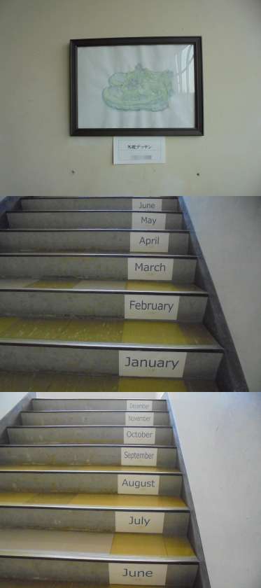 校舎内の環境を整えています。〈5月20日(水)〉 公開日 2015/05/20 更新日 2015/05/20 学校だより 現在、校舎内の環境を整えています。階段の踊り場には、3年生の作品「外靴のデッサン」が展示されています。また、1年生全員が使用する階段には、1月〜12月までの英語が掲示されています。