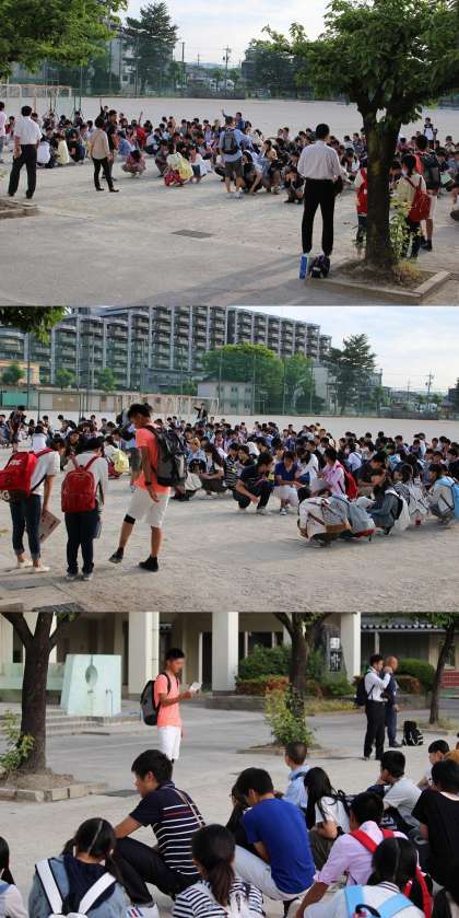 6:30から運動場で出発式を行いました。欠席者は0名です。195名全員参加です。修学旅行が始まりました。このHPでは、送られてきた写真をできるだけリアルタイムでお知らせしたいと考えています。最終日の到着時刻については、このHPと緊急メールを通して、ご連絡いたしますのでご覧ください。