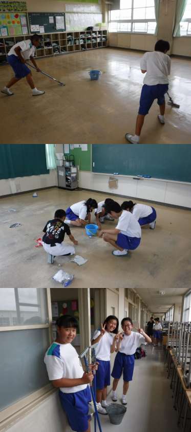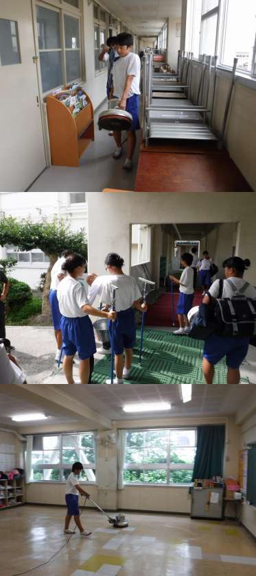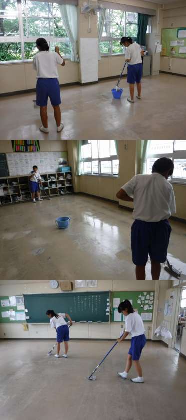 教室ワックスがけ〈7月10日(月)〉 公開日 2017/07/10 更新日 2017/07/10 学校だより 先週は美化強化週間でした。今日は教室のワックスがけです。営繕委員が中心となってワックスをかけ、時間があればポリッシャーをかけました。綺麗な教室で懇談会が迎えられます。