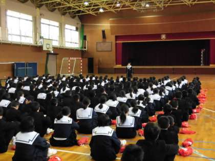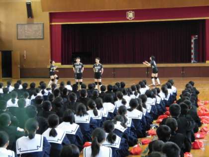 4/11(水)、1年生に向けての部活動紹介が、体育館で行われました。どの部活も制限時間内で、新入部員を獲得するために、一生懸命発表していました。また、聞く側の1年生も、しっかりした態度で先輩たちの話を真剣に聞くことができました。最後に部活担当の先生から、「自分自身で決めよう」「3年間、がんばれる部に入ろう」との話がありました。